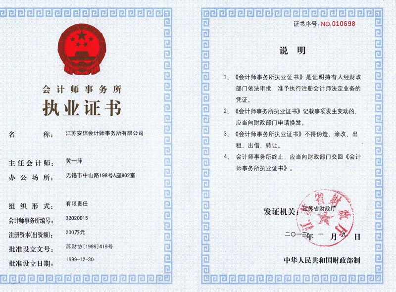 会计事务所执业证书